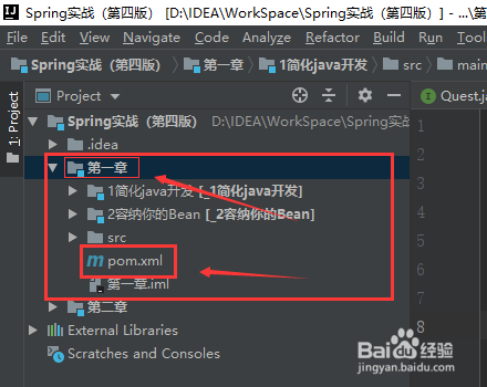 首先,我们找到一个一个maven项目(含有pom.xml文件)。例如这里的名为第一章的项目