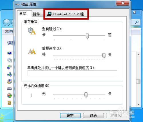 打开了键盘属性界面后在上方的分类中找到【Thinkpad F1-F12键】并点击,如图所示。