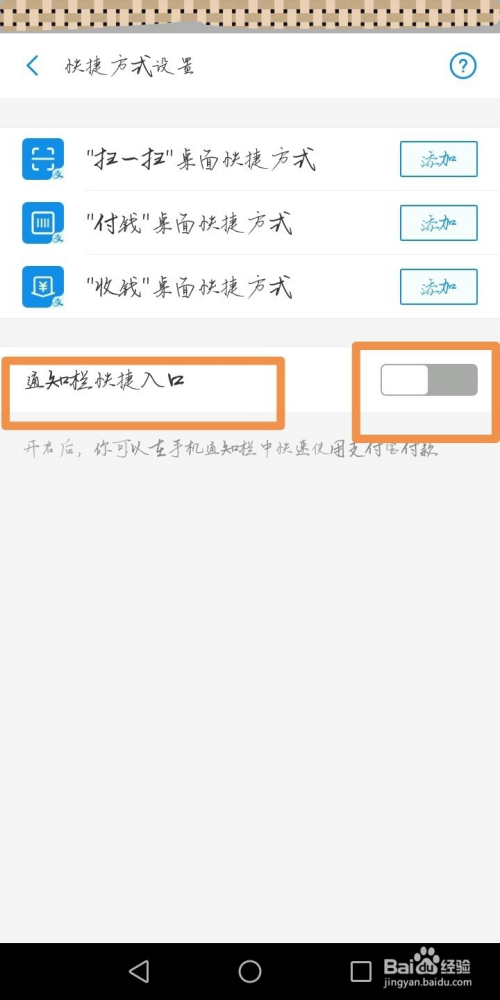 跟着手机的成长和网路的普及化,人们利用手机越来越多,可以经由过程手机来完当作很多我们想要做的工作,好比购物、听歌、搜刮、阅读、结交等。我们在手机上购物,一般城市用到支付宝这个平台。那么,对于支付宝,我们如何在手机通知栏中建立支付宝快捷进口,以便利我们的利用呢?