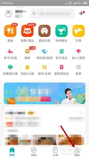 点击打开手机了的美团,在首页点击底部导航栏的【我的】选项。