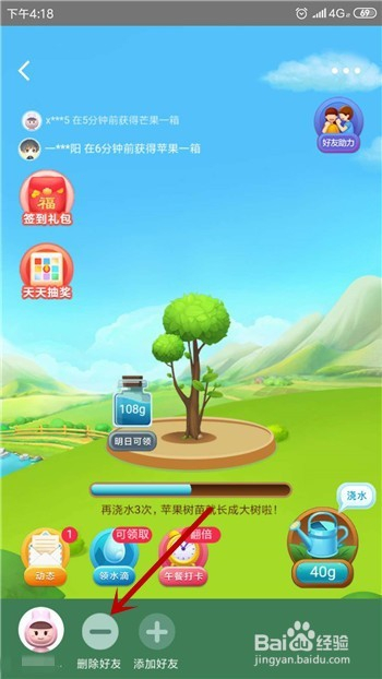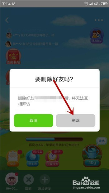 在小美果园中底部是老友列表,点击【删除老友】功能。