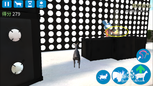 在这张图上有一栋并世无双的高楼,在出生地就能看到。节制山羊从1楼进入并找到电梯,走进电梯会被传送到最高层,那边正在跳舞,在DJ桌上找到小金羊奖杯。