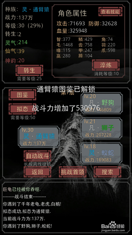 拟生如图可以看到,我比力喜好猫,因为会连击,刷经验贼快的,拟生越高越能拟生更强的生物,我们可以看到颜色都是纷歧样的,第一流是神哦