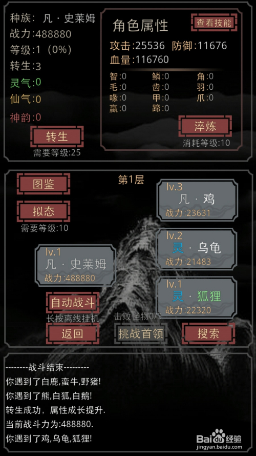 转生之后我们会开启一个很是适用的功能,就是主动进犯,有利有弊,小我保举,挂机找个最低的层,我一转都在3层刷,一向刷,