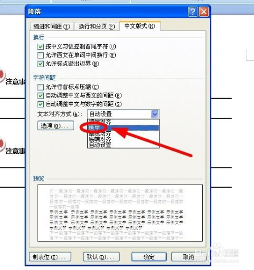 在弹出的“段落”对话框中,选择“中文版式”选项卡
