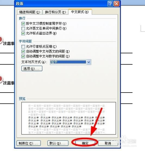 选择完当作后单击“确定”(单击“默认”今后就是默认居中对齐,不消再设置了)