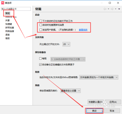 然后再常规中的启动选项中,将红框中的两个选项勾选去失落