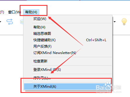 然后点击帮忙中的关于Xmind