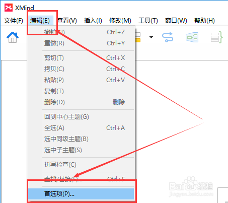 选择上面功能栏中编纂 ——>首选项
