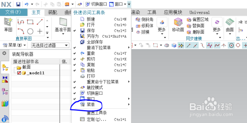 为了便于理解,教程以新建的UG建模模式下的文件为例。