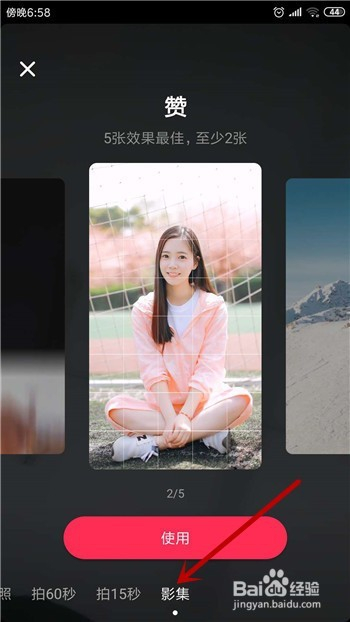 打开抖音的录制视频界面后就可以看到底部的【影集】了,点击后我们就可以去建造影集。