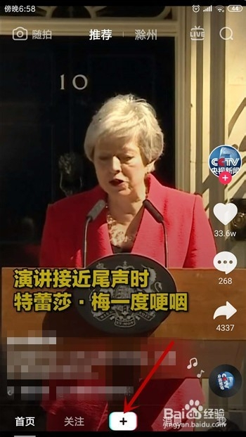 更新好后继续打开抖音,在首页点击底部导航栏的【+】按钮。