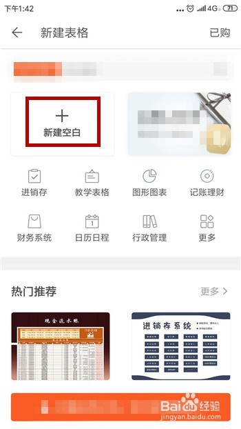 在新建表格界面中我们可以利用一些模板,若是本身建立则点击【新建空白】。