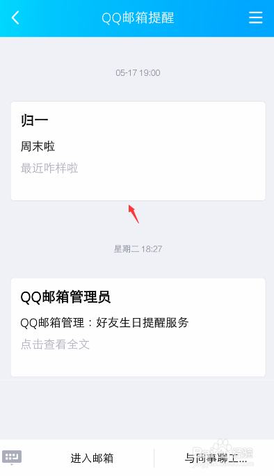 进入QQ邮箱提醒页面,就可以查看到全数接收的邮件了,选择一个邮件。
