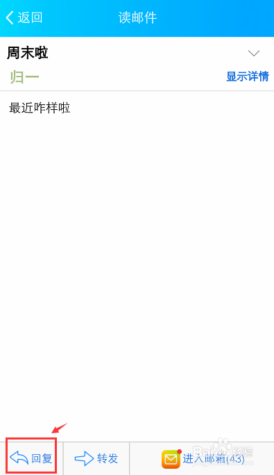 进入邮件,点击左下方的【答复】。