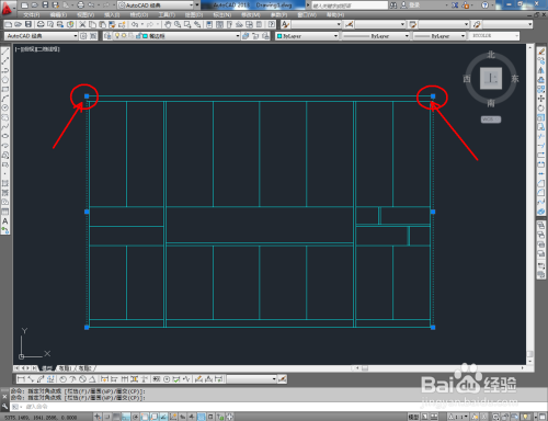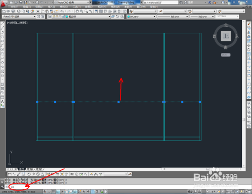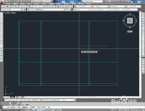 点击【矩形东西】,在图示区域绘制四个矩形图案后,点击【偏移】完当作餐边柜门板上装饰线的绘制。经由过程拷贝,完当作所有门板装饰线的建造后,将建造好的拉手图块导入文件并调整好拉手的位置。到这里,我们的餐边柜平面图便全数建造完当作。