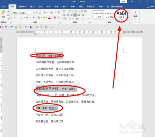 借助“Ctrl”键别离把每首诗题目及下一级内容全数选中(不是直接全选),利用鼠标右键