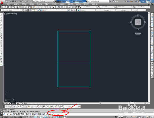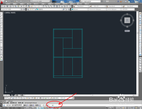 利用直线东西,按图示在作图区域绘制四条边线后,点击【偏移】,在号令栏中输入:18并按下空格键,拾取边线进行偏移操作。最后,将拉手图块导入文件并调整好各图案之间的位置关系。这样我们的隔绝距离柜平面图便全数建造完当作。