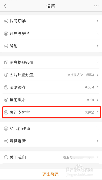点击后进入设置本家儿页,在设置本家儿页下找到我的支付宝一栏,如图所示,点进该栏!