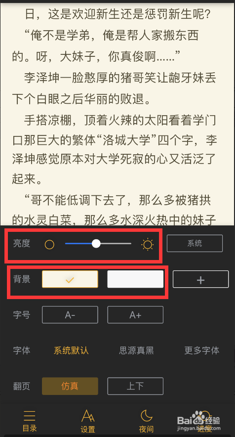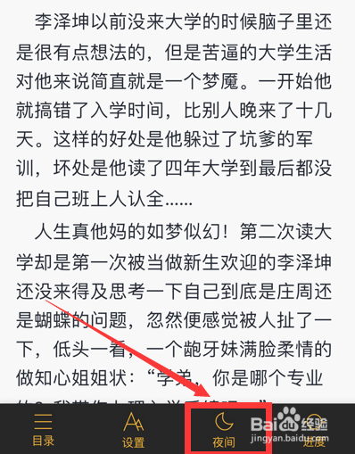 这时阅读界面的布景就会酿成黑色,文字酿成白色,这样就当作功设置夜间模式了