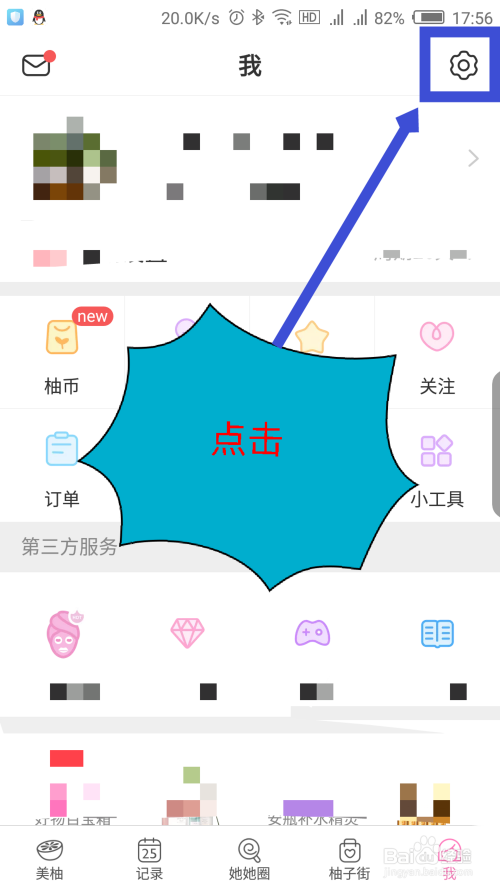 美柚可以开启悬浮窗通知功能,在我的界面,点击右上角的设置。如图所示