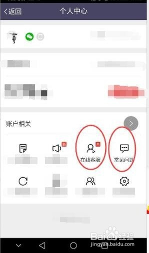 然后在小我中间中,找到在线客服,和常见问题两个选项,如下图