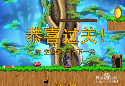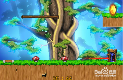 接下来狐狸返回到第一关蘑菇并跳跃上去,上面的木棍起头移动,如下图
