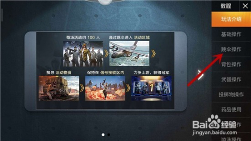 在教程中的右边是具体的游戏教程分类,我们可以点击本身想要看的教程,好比以跳伞操作为例。