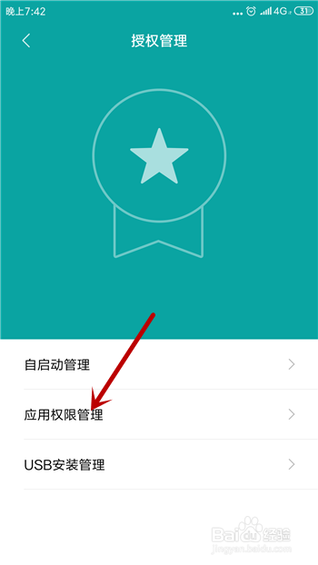 在手机的授权办理中需要选择【应用授权办理】,如图所示。