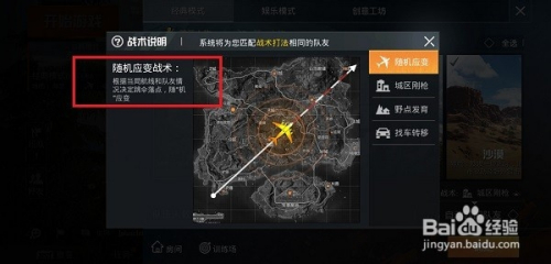 第二步点击切换模式之后,可以看到右下角有战术,默认是因地制宜,这个是按照航路和队友环境随机跳伞的意思,如下图所示:
