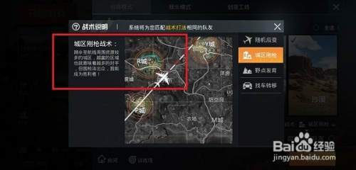 第三步点击战术,可以看到一共有4种,因地制宜,城区刚枪,野点发育,找车转移,如下图所示: