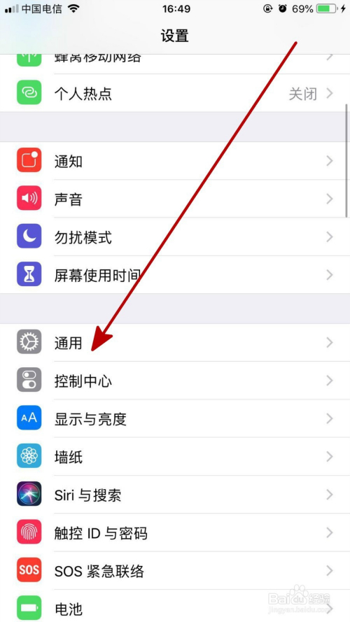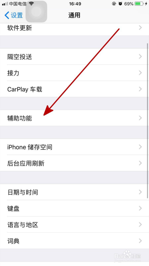 在打开的通用页面中点击“辅助功能”,如下图