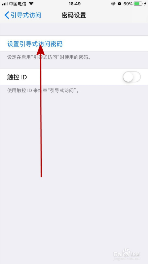 打开后我们先开启指导式拜候开关,然后点击“密码设置”,如下图