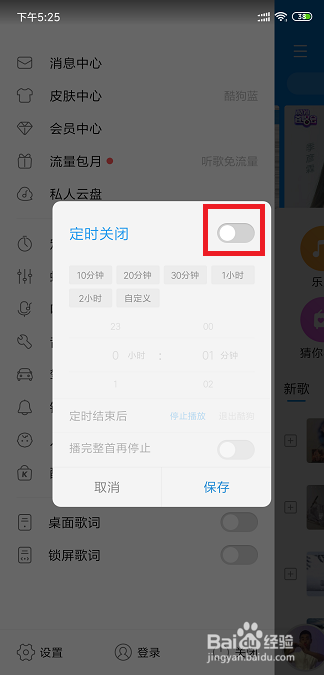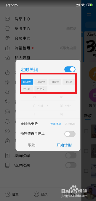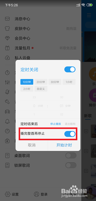 有的时辰按时主动封闭了,一首歌却还没放完,这就很难熬难过了,所以我们这里还有着播完整首歌再再遏制的选项,我们可以打开他。