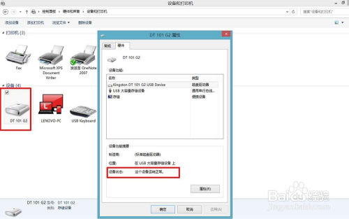 仍是在“节制面板”打开“设备和打印”,识别出来后右击点击“属性”中 点击“硬件”查看该设备运转是否正常,若是不正常把主要资料转移复制到其他存储设备里,再从头换个U盘利用.