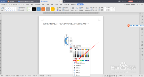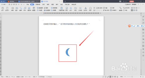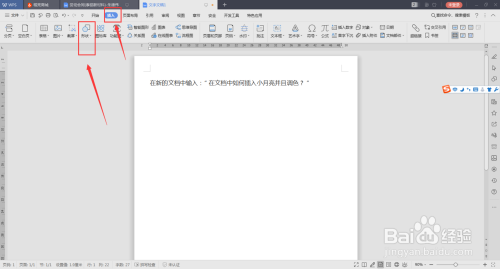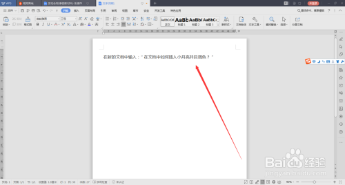 在新的文档中输入:“ 在文档中如何插入小月亮而且调色? ”,如图: