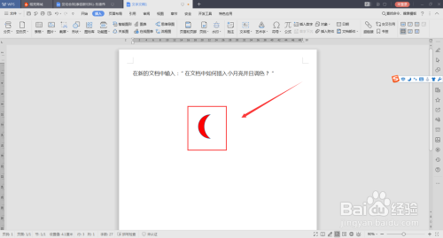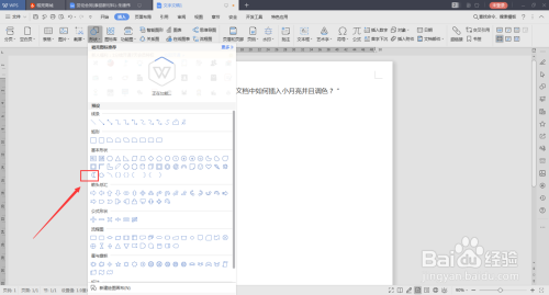 在“外形”中选择“月亮”的图案,点击文档空白中,即可插入所需图案,如图: