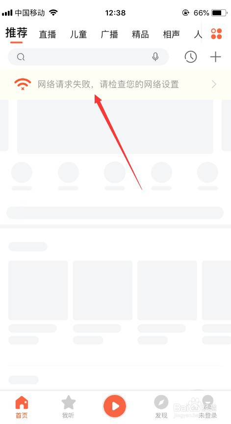 在利用喜马拉雅app的时辰,有时可能会提醒“收集请求掉败,请查抄你的收集”,如图所示。