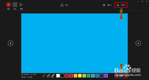 选择好之后就会打开ppt的幻灯片演示的录制界面,在该节目左上角就可以找到和点击“起头录制”或“暂停录制”相关选项。