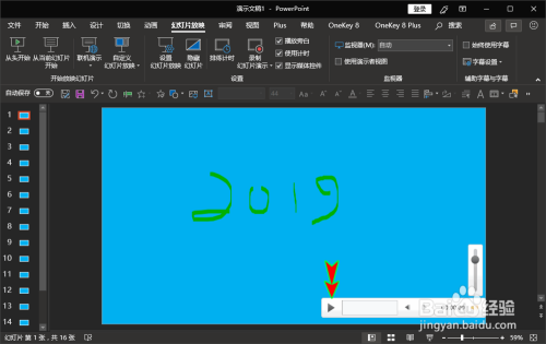 录制完当作后,我们点击“遏制”按钮即可遏制录制,遏制录制撤退退却出录制,就可以在ppt中看到我们方才录制的演示过程视频,点击也可以进行播放。