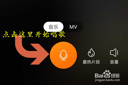 点击K歌选项系统就会下载伴奏,然后就会跳转到下图所示的K歌界面了,我们只需点击最下方的话筒图标就可以起头唱歌了,如下图所示...