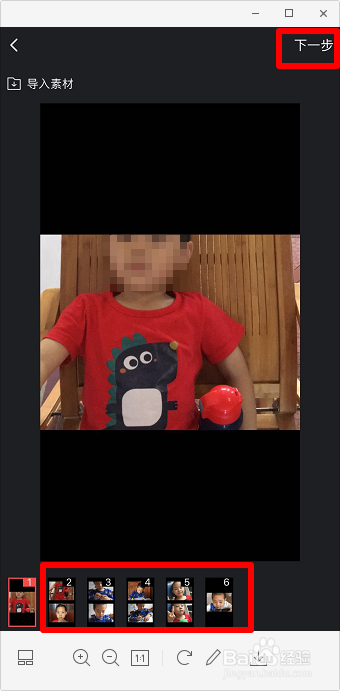 上下拖动照片,调整显示区域,点击下方的“2”“3”等小图,逐个调整, 然后点击“下一步”。