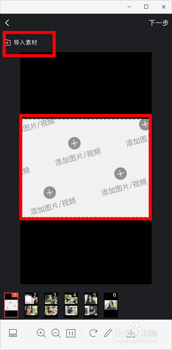 点击“添加图片/视频”或“导入素材”。