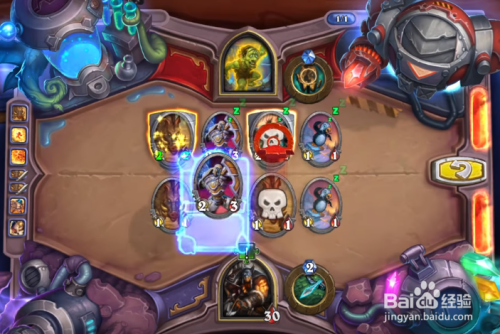 进入关卡,我方场上有1个1/1的石牙野猪和1个1/1的企鹅