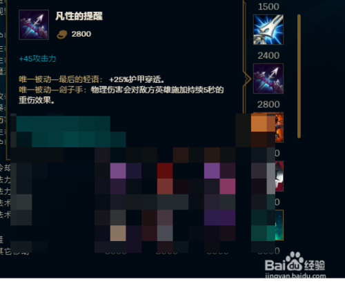 第三件装备,为了增添一点进犯力以及生命值还有冷却时候,建议出黑色切割者。