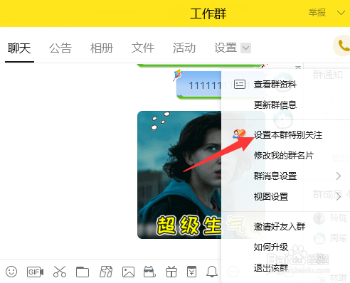 3、然后选择设置本群存眷,如图: