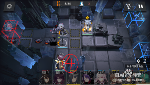在费用达到13(或14)后,在最下面的格子上放置精2的能天使,弥补危险减小近卫干员的压力。
