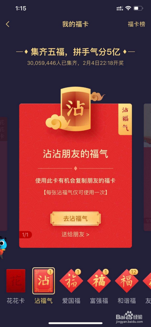 利用你的沾福分卡,去沾已经获得花花卡的老友的福卡,就有几率复制出一张花花卡;