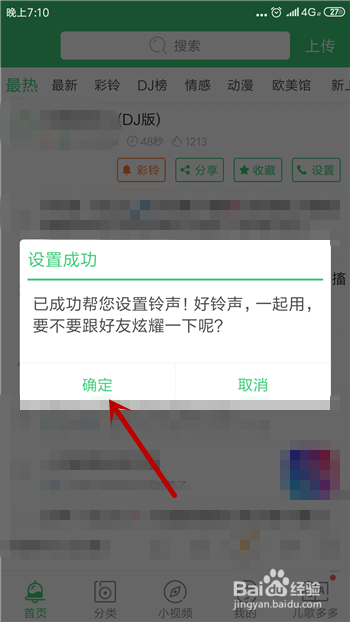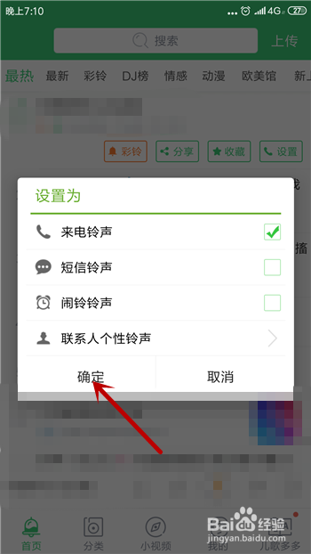 这样就当作功的把歌曲设置为手机铃声了,点击下方的【确定】按钮。