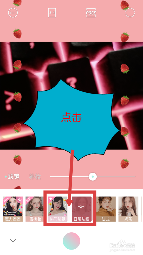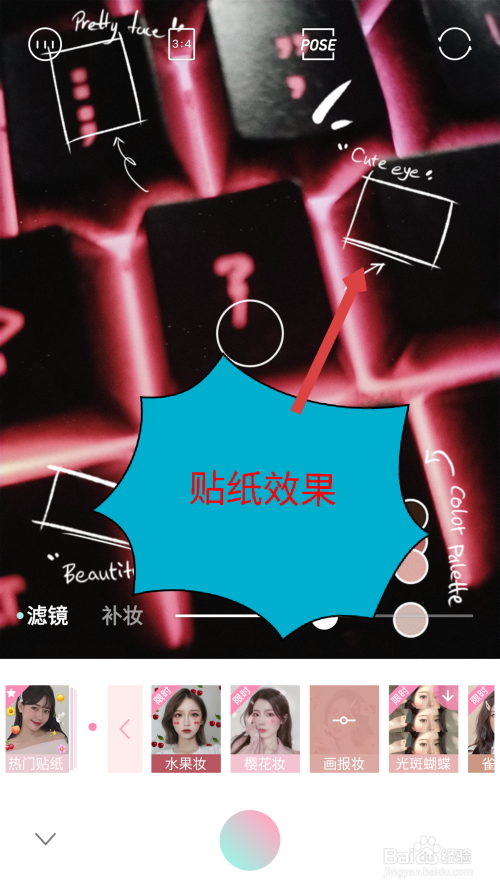 找到对劲的贴纸结果,然后点击底部的按钮拍摄照片。如图所示